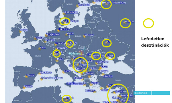 - 30 körüli járat indítását – MALÉV: 45 és a frekvenciájuk együttesen sem éri el a MA felét